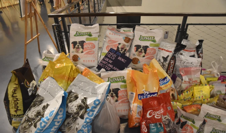 Gecede yaklaşık 5 bin kilogram mama bağışı kabul edildi.