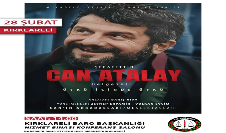 TİP Kırklareli il örgütü imzalı yapılan yazılı açıklamada, Türkiye İşçi Partisi Hatay Milletvekili Şerafettin Can Atalay'ın mücadelesini konu alan "Şerafettin Can Atalay: Öykü İçinde Öykü" belgeseli Kırklareli'ye geliyor.